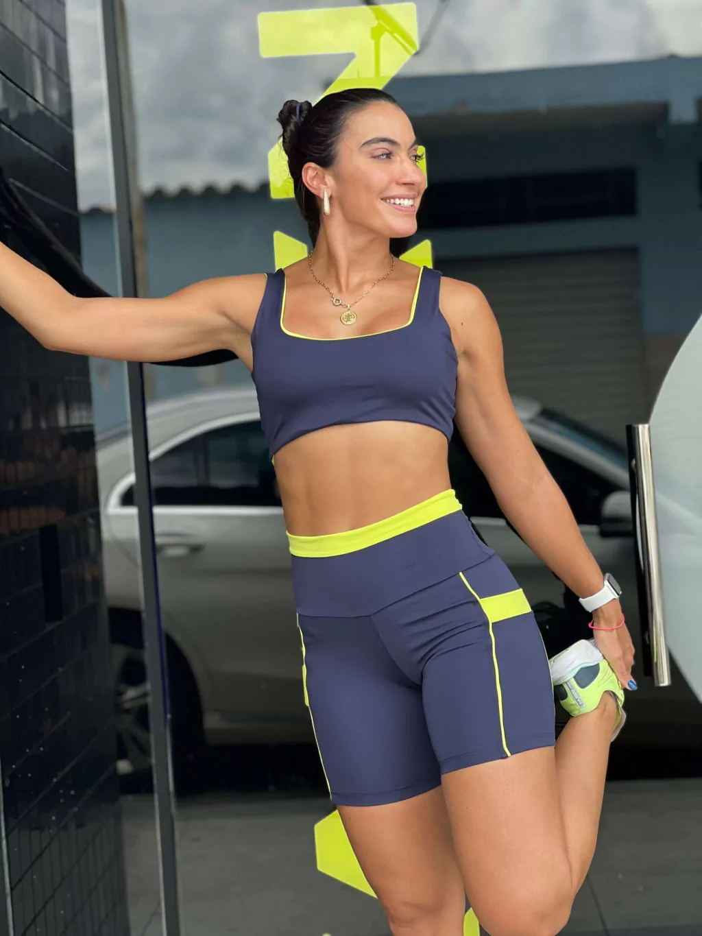 Top com alças largas, dupla face, sendo um lado azul e o outro verde lima.