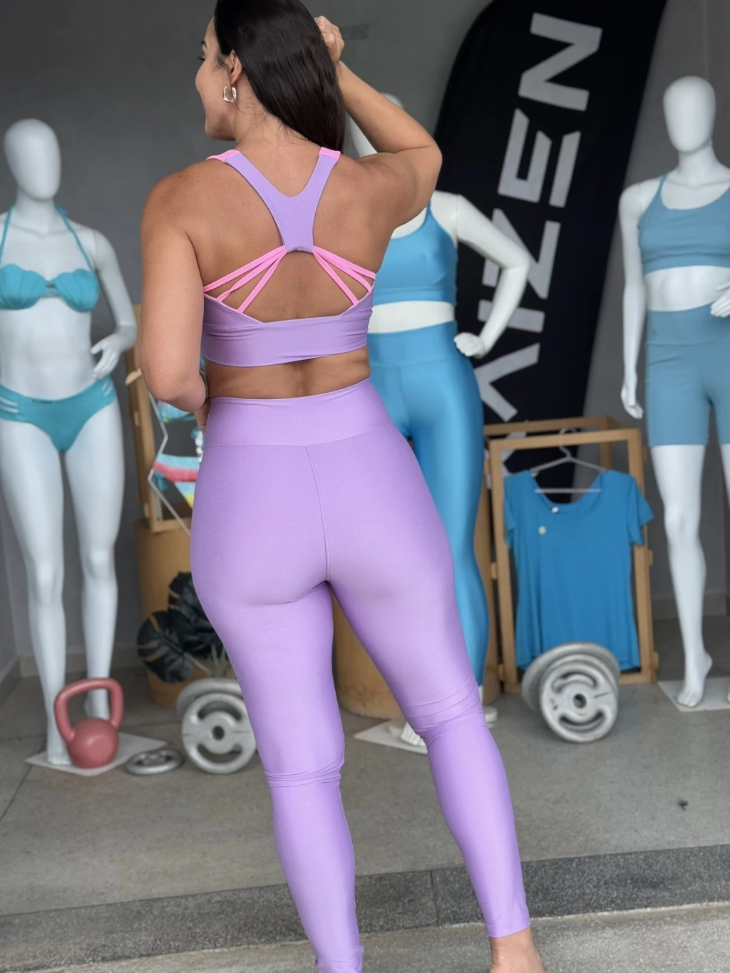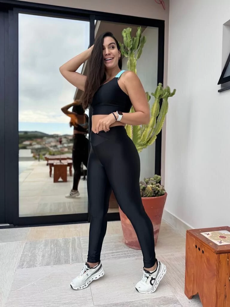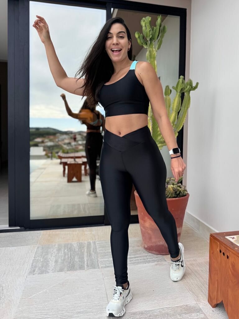 Confeccionado em tecido com leve brilho, este conjunto traz estilo e funcionalidade para seus treinos. O top oferece excelente sustentação, ideal para atividades de impacto, enquanto a legging com cós anatômico modela e afina a cintura com conforto e zero transparência.