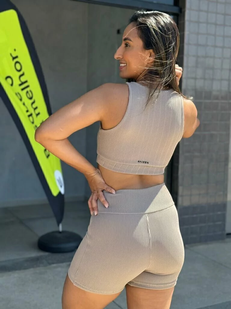 A bermuda de cós alto possui forro interno, eliminando qualquer possibilidade de transparência. É uma peça atemporal, perfeita para ser usada em diversas ocasiões — do treino ao look casual.