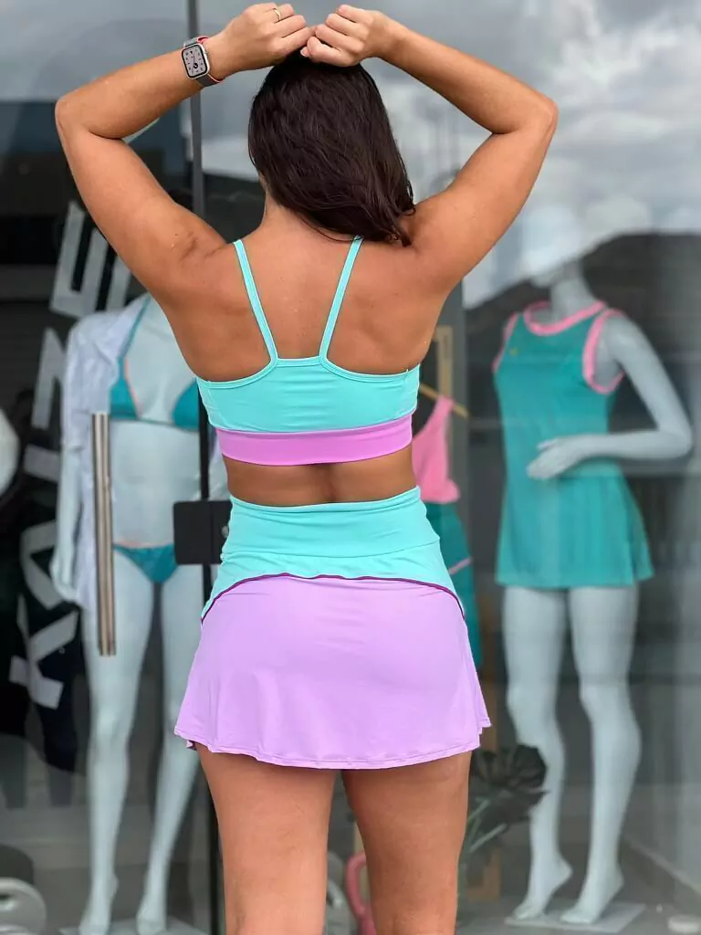 O conjunto perfeito para amantes de Beach Tênis, além de ser uma peça super versátil, podendo ser usada em qualquer modalidade esportiva. A saia possui recortes que valorizam a peça, cós alto e firme ao corpo, proporcionando conforto e estilo. Conta com um short interno e um bolsinho funcional na lateral para mais praticidade.