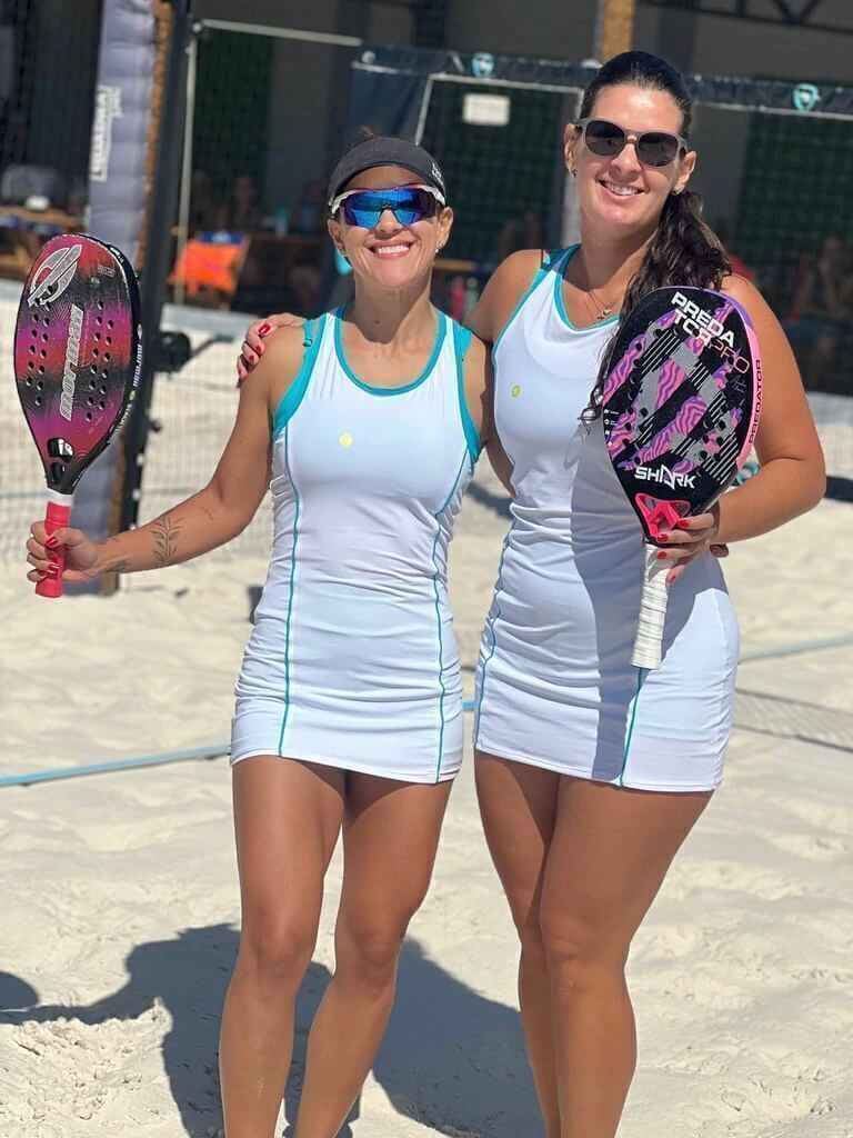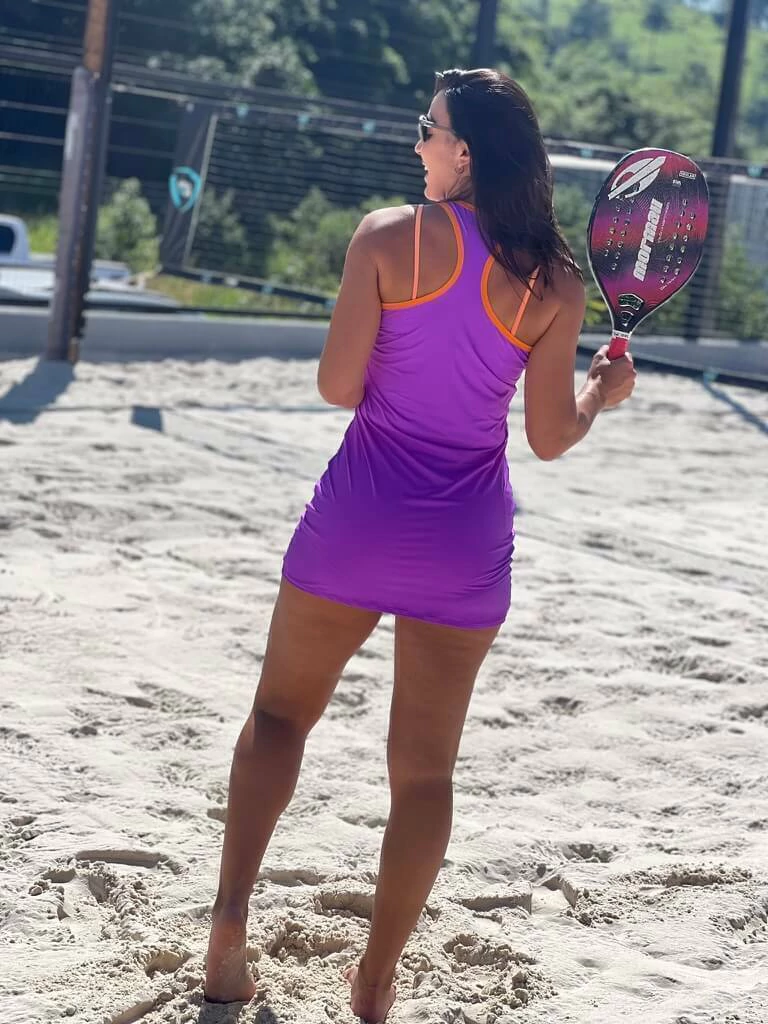 Conjunto composto por vestido estilo nadador, shorts com bolsinho para bolinhas e top com alças reguláveis, garantindo conforto e ajuste ideal ao corpo.