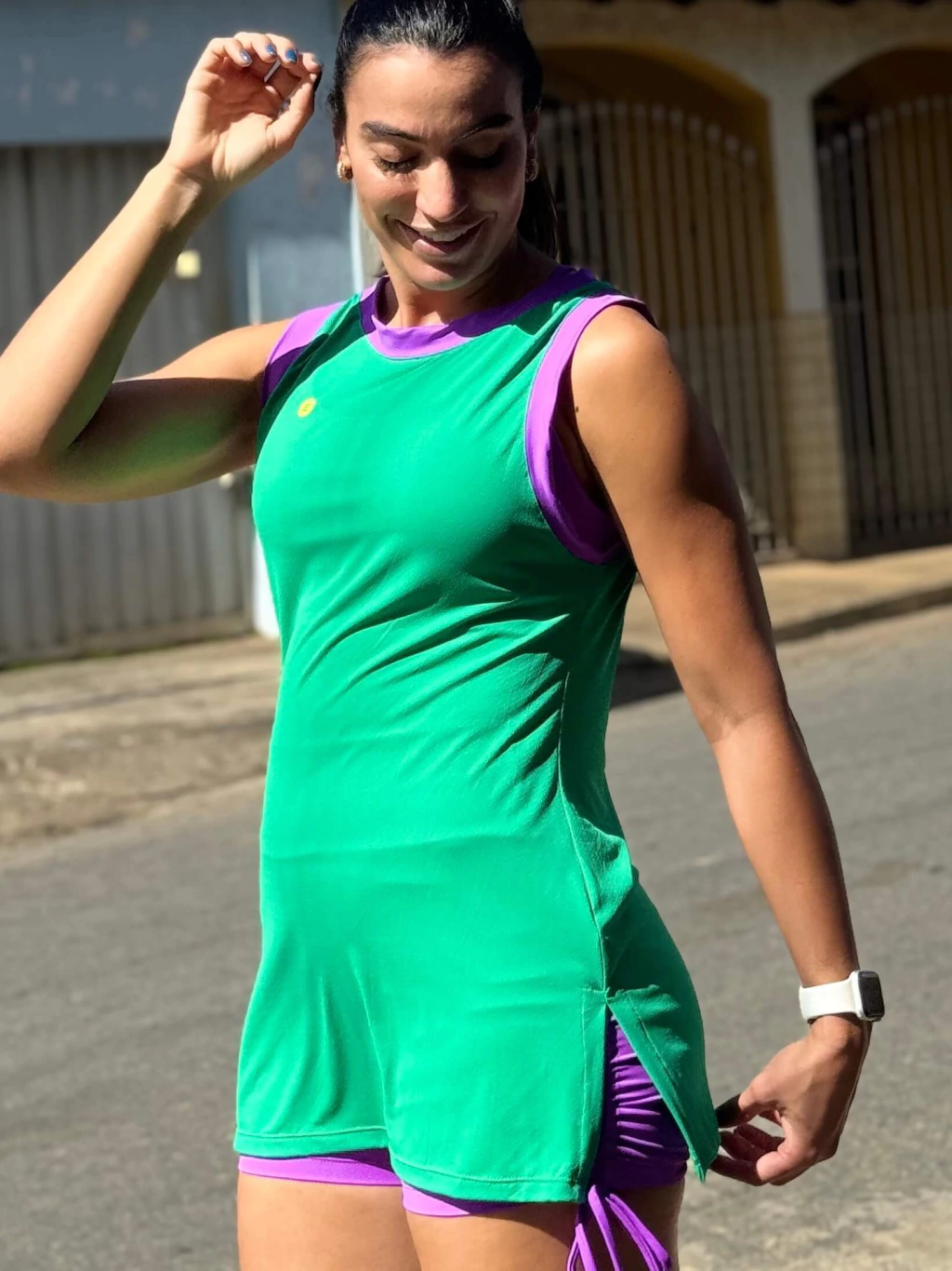 Possui comprimento longo, podendo ser usado também como vestidinho — versátil e ideal para o dia a dia ou para compor looks pós-treino.